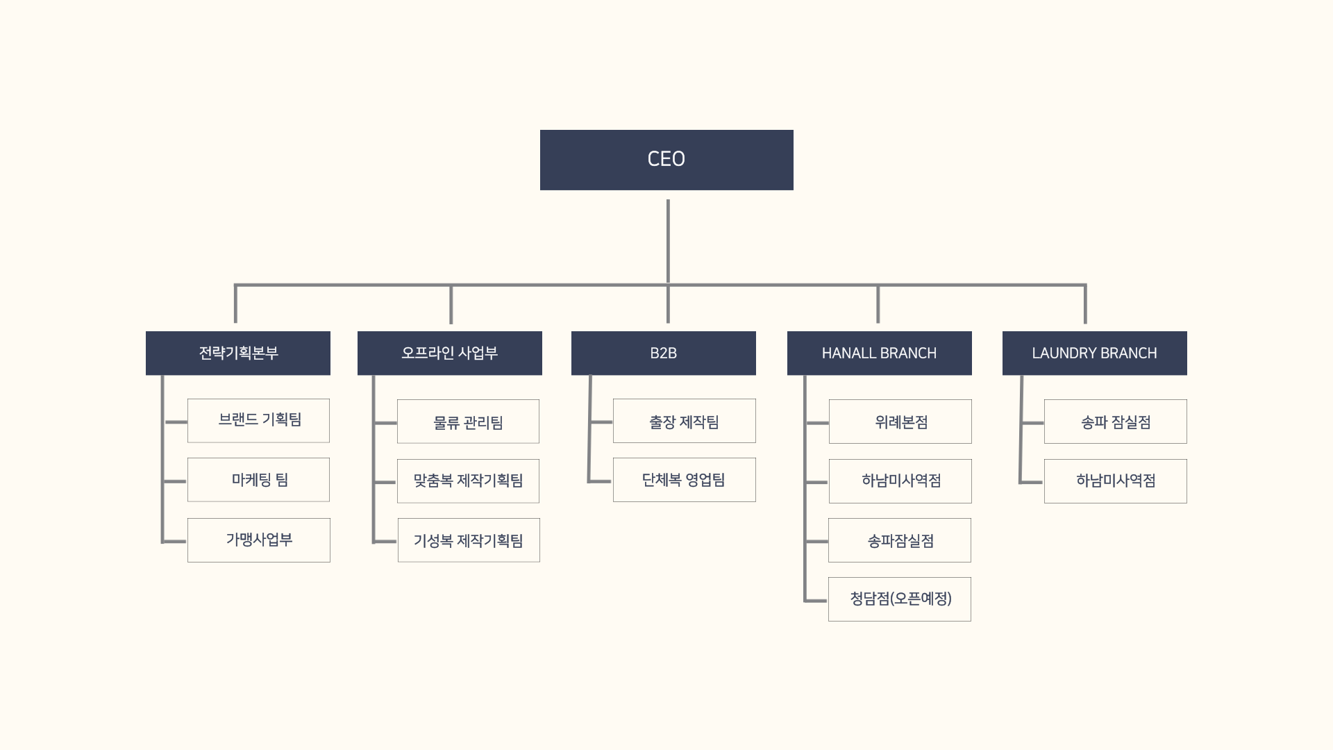 | Mission 중요한 날 꼭 찾게 되는 가치있는 정장과 수제화를 만들겠습니다. | Vision 국내 맞춤 업계에서는 찾아볼 수 없었던 프리미엄 서비스를 실시하여, 맞춤 패션 트랜드를 선도하는 기업 |