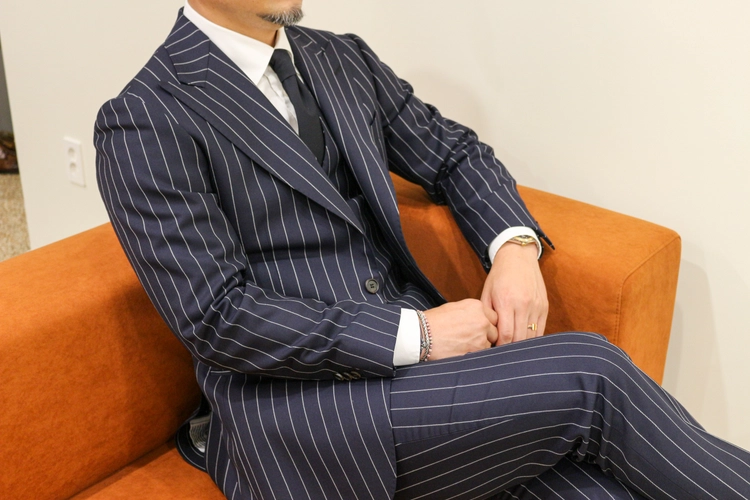์๊ตญ ์ํฌ์ ํ ์คํ์ผ ๋ค์ด๋น ์คํธ๋ผ์ดํ 3-Piece SUIT